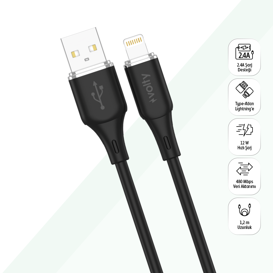 12W 1.2m USB-A to Lightning Kablo