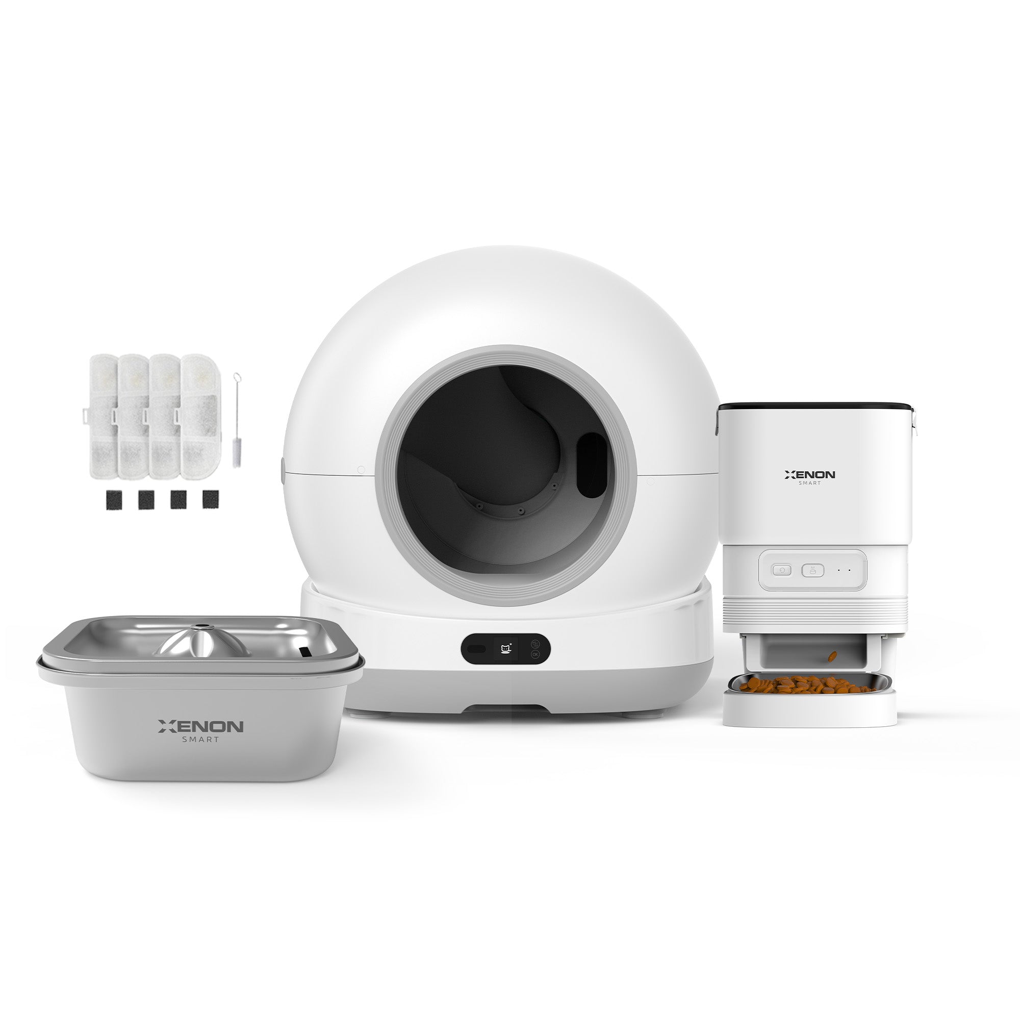 Akıllı Kameralı Kedi Tuvaleti, Mama Kabı ve Çelik Su Pınarı 4'lü Pet Ürünleri Seti