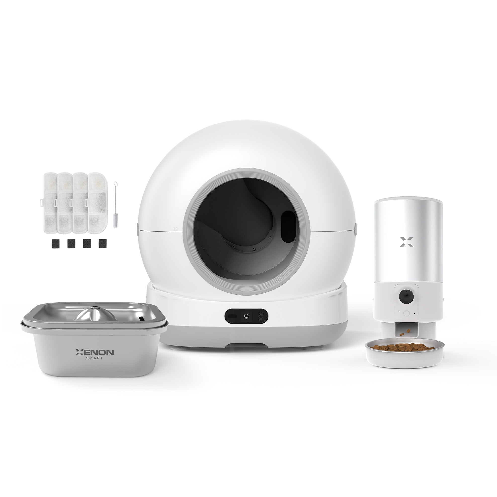 Akıllı Kedi Tuvaleti, Çelik Mama Kabı ve Çelik Su Pınarı 4'lü Pet Ürünleri Seti
